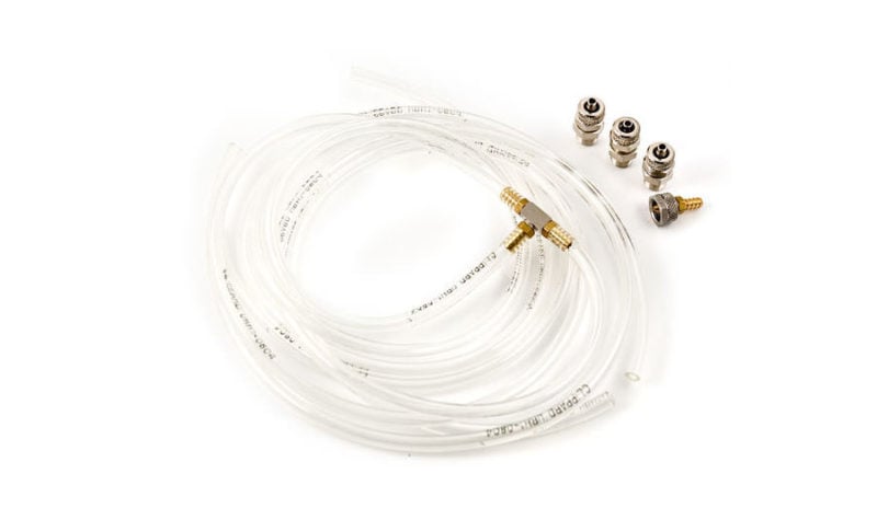 Bestehend aus 3 Urethanschläuchen á 1 m mit T-Stück, 3 St. Schlauchanschlüssen mit Aussengewinde 1/8 " NPT und 1 St. Schlauchanschluss 60-1/8 ID (Schlauchtülle)